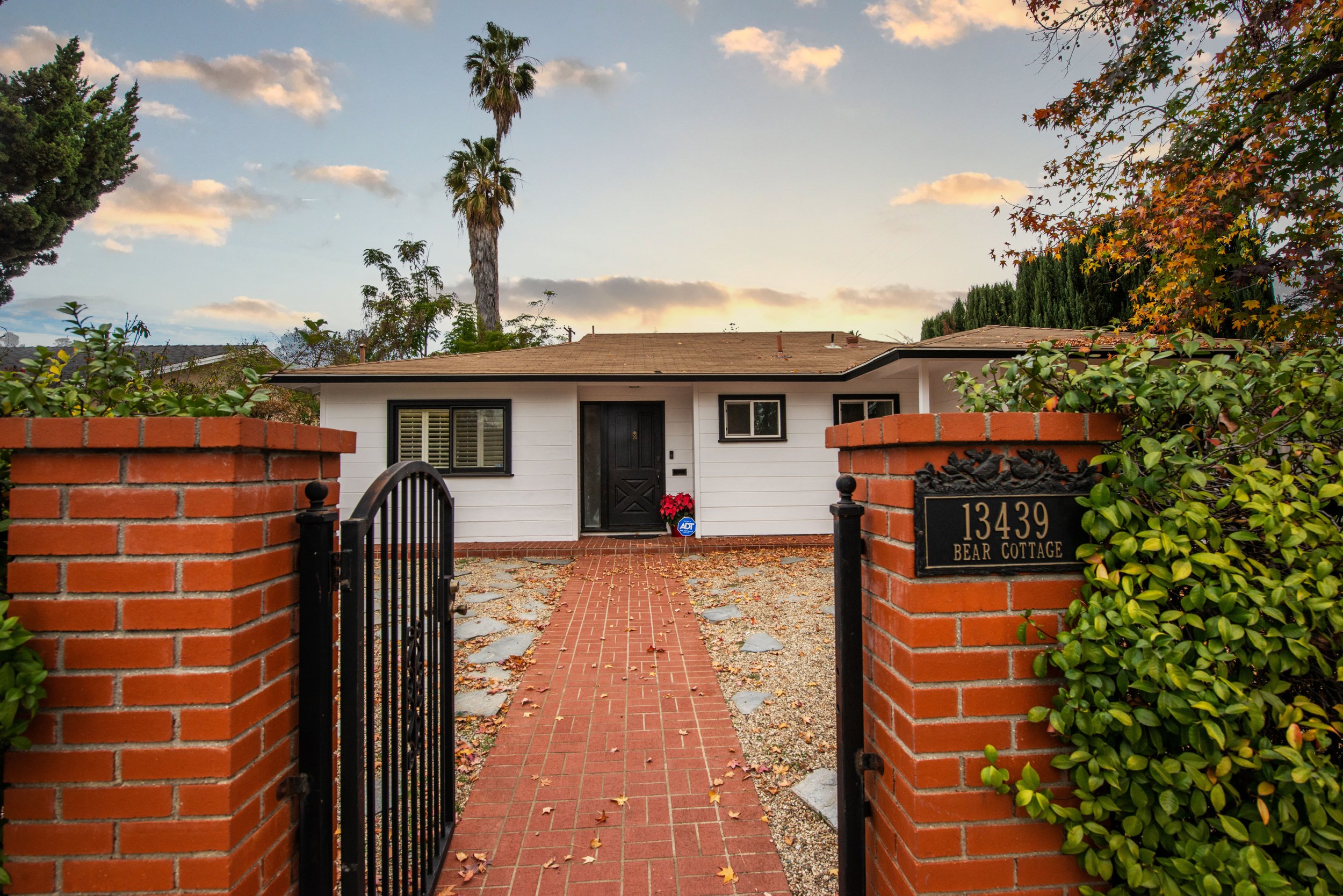 Recently remodeled galley kitchen design with quartz counters, a shapely backsplash, custom soft-close cabinets and drawers, the custom tile extends to the traditional dining room. Features include a primary suite with a luxurious handcrafted walk-in closet, and a quality custom designed private bathroom! You will find elegantly handcrafted closets in all bedrooms, and a second impeccably tailored bathroom. Separate detached guest house/studio/granny flat offers and additional 300 square feet of living space, comes with a full bedroom and newly remodeled bathroom, and kitchen area! The cheerful and expansive backyard is a winning combination of practicality and leisure, offering plenty of parking for guests, while you relax underneath the covered patio surrounded by the beautiful brickwork and delicious fruit, pomegranate, lemon, and orange trees!